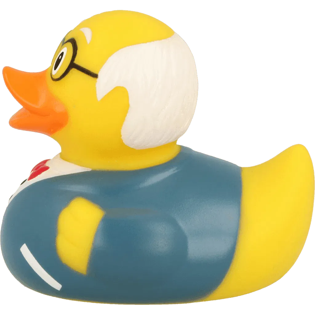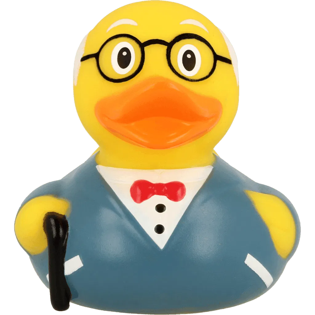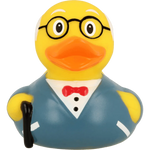 Bestefar-badeanden er en stilig og sofistikert liten fyr! Han har på seg en elegant jakke og en rød sløyfe i halsen. Med briller på nebbet og en stokk i vingen er det ingen tvil om at han er full av visdom og verdighet. Denne badeanden er en perfekt gave til en bestefar eller eldre slektning, eller til noen som elsker å samle på morsomme og unike badeender. Han vil elske å være en del av badeand-samlingen din!