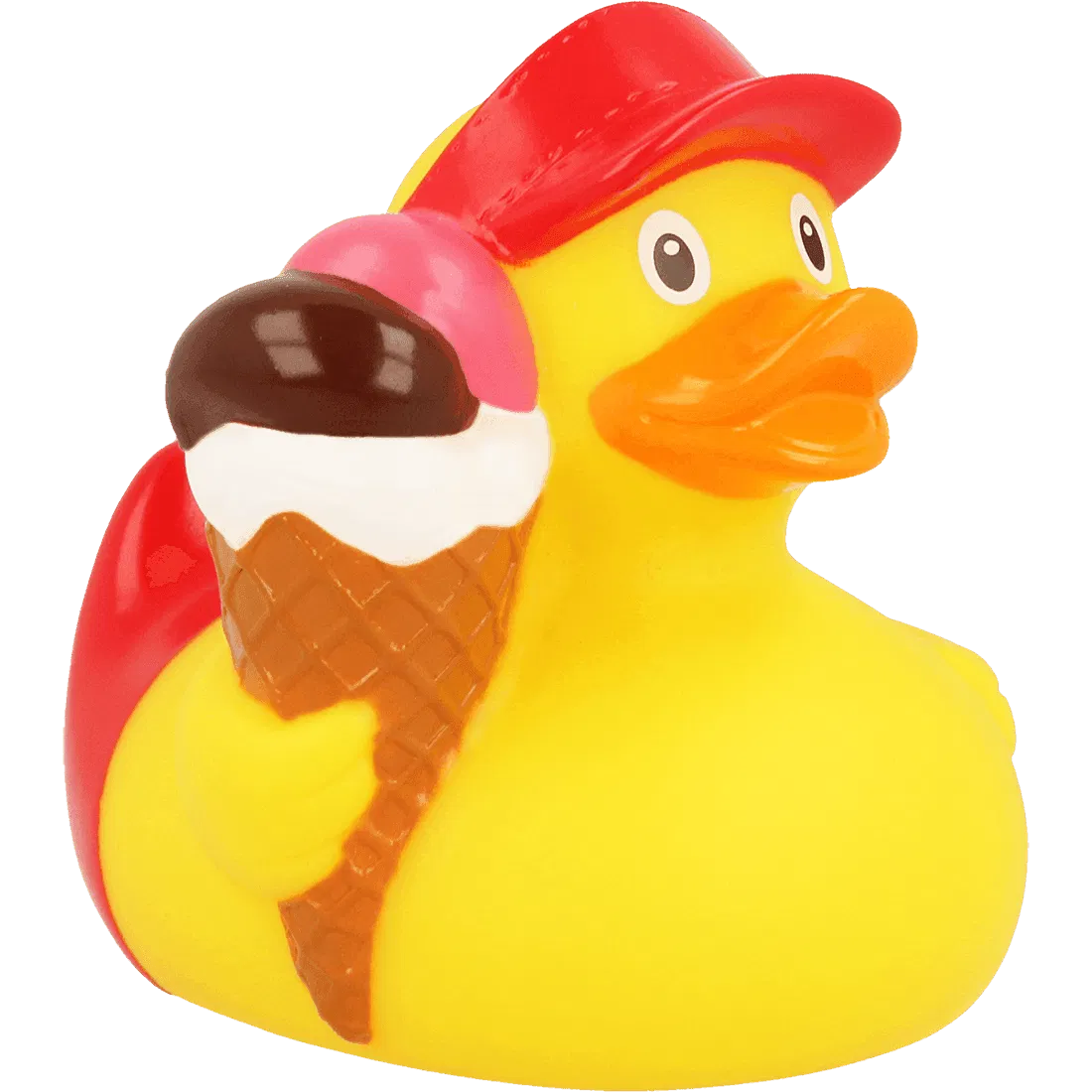 Denne iskrem-badeanden er din perfekte følgesvenn for en varm sommerdag i badekaret eller i bassenget. Med sin store iskrem i hånden kan den minne deg om de deilige godbitene som kan kjøle deg ned på en varm dag. En morsom og unik gave for enhver iskrem-elsker, eller som et kult tillegg til en badeandsamling. La denne iskrem-badeanden bli en del av din sommermoro og ta den med deg på alle dine vannbaserte eventyr!