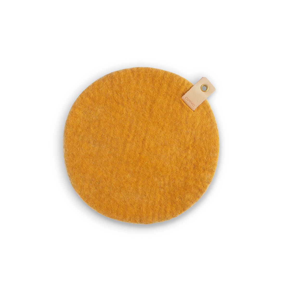 Dette myke vidunderet er laget av deilig ull og er 18 cm i diameter – akkurat passe for en stump på tur! Og se på den snasne skinnfliken på siden: superpraktisk for å henge det på sekken, så du alltid er klar for en spontan rast.