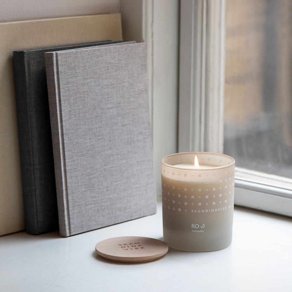 Duftlys, Ro, fra Skandinavisk, 200g. Et beroligende og deilig duftlys inspirert av fred og ro, små ord med stor betydning. Duftnoter: Klippet gress og falne blader, agurk og ville fioler. Brennetid ca. 50 timer. Ro - tranquility.