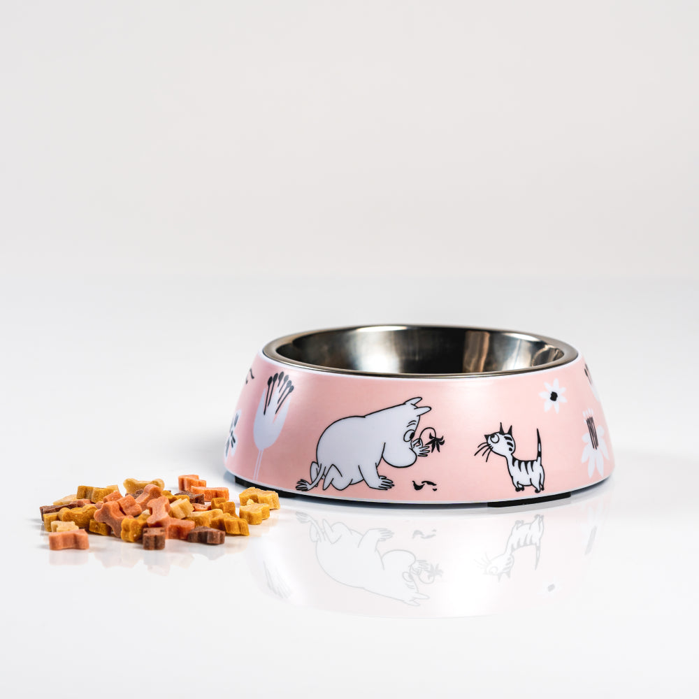 Our furry best friends also need their own Moomin series! Muurla ÃÅs Moomin pets series consists of essentials that we feel like are the core items to a happy, furry best friend ÃÅs everyday needs. This beautiful pink Moomin melamine food or water bowl has a separate steel inner dish with non-slip rubber pieces in the bottom. Dishwasher safe. Size: 13,5 x 13,5 x 4,5. Part of the sales will be donated to the University of Helsinki DogRisk research program, which conducts interdisciplinary research work related to nutritional, environmental, and genetic factors behind canine diseases as well as Cancer detection of dogs.