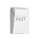 En kjempefin, hvit postkasse med teksten "POST" i sølv.
