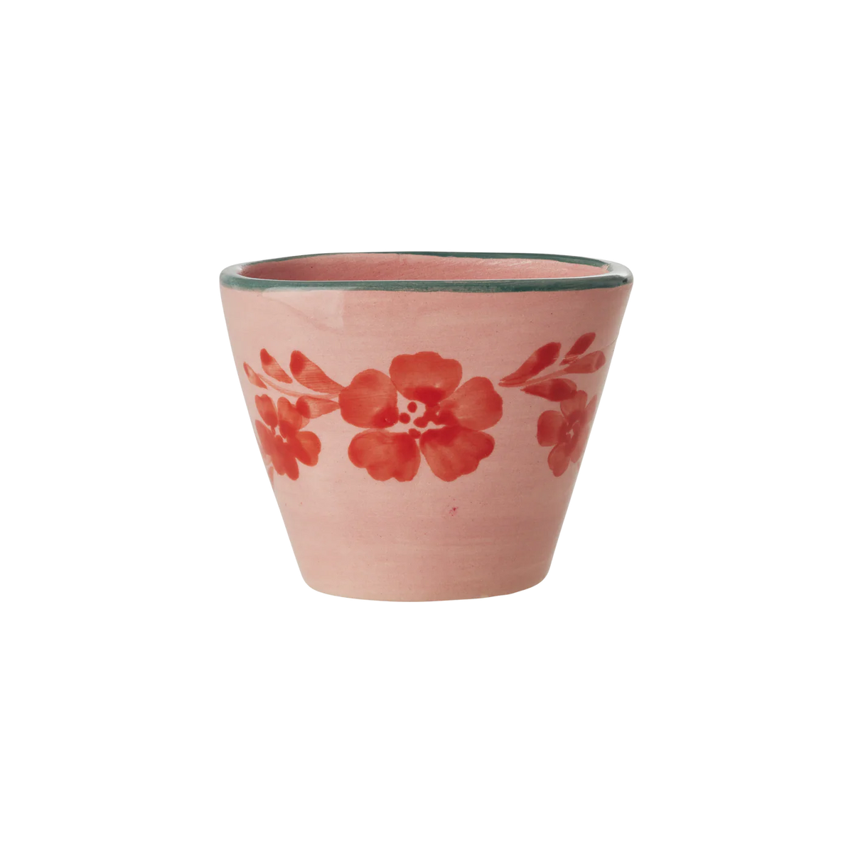 Vakker oval espressokopp i keramikk med håndmalt motiv av en delikat oransje blomsterklase. Denne rosa skjønnheten er perfekt for å starte dagen, enten det er med kaffe eller en oppkvikkende ingefærshot. Hvert kopp er håndmalt av en gruppe fantastiske portugisiske kvinner, noe som gjør hver enkelt helt unik. Vi synes den er så sjarmerende!